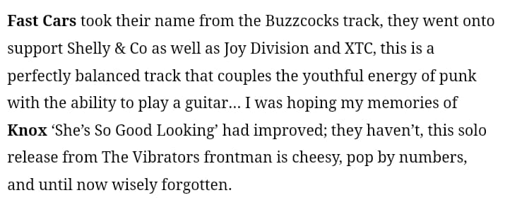 Since I began 'surfing the net' I've found interest on Punk / Mod / Powerpop sites in our single